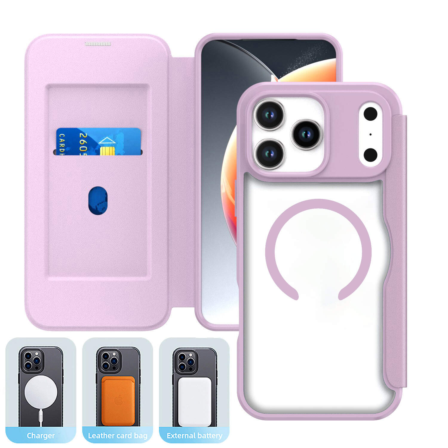 Caixa de telefone de couro dobrável magnético para iPhone 16 Pro PRÁTICA COM CARTO SLOT-COPY
